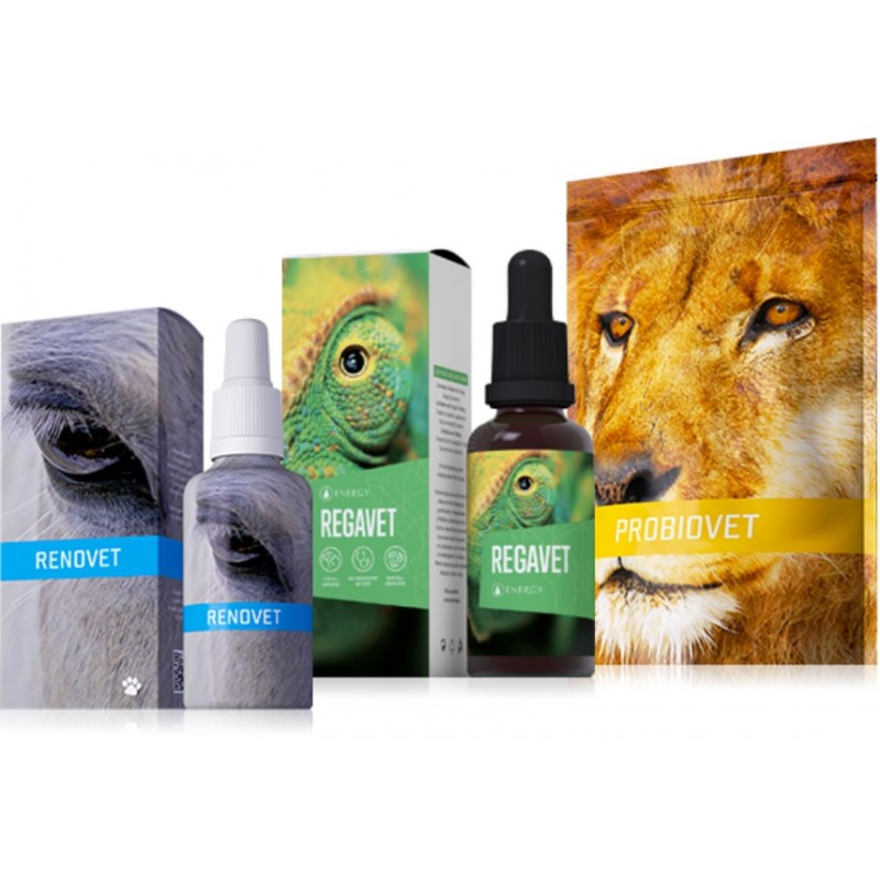 Každý chovatel určitě zaznamená pozitivní výsledky na zdravotním stavu svého zvířete. Jen nesmí zapomenout, že proces stárnutí je jednosměrný, proto jedna aplikace je jen částí opatření. Proto je pro uživatele nachystán produktový balíček Regavet, Renovet a Probiovet za výhodnou cenu na celé období metabolického omlazování. Ještě dodatek. Stejné preparáty i stejný postup zvolíme při zmírňování kožní i respirační alergie a také stejný postup použijeme na chronické selhávání ledvin - hepatorenální syndrom.